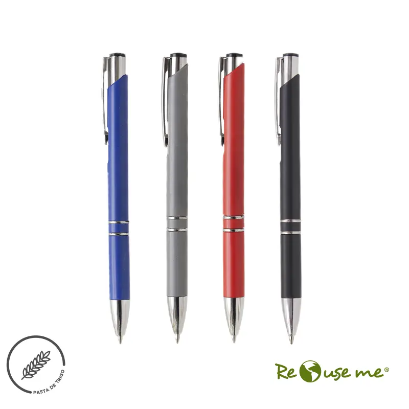Lápiz confeccionado en Wheat Straw, pasta de tallo de trigo, un material sustentable que reduce el consumo de plásticos vírgenes. Los productos elaborados con este componente, son de fuentes naturales, y pueden tener un tono irregular debido a las diferencias naturales en el color y la textura del material. ver imagen. Tinta de color azul y apertura con sistema retráctil. Debido a que la pasta de trigo es un material 100% natural, puede haber ligeras variaciones en el color del producto de un lote a otro. ReUseMe.